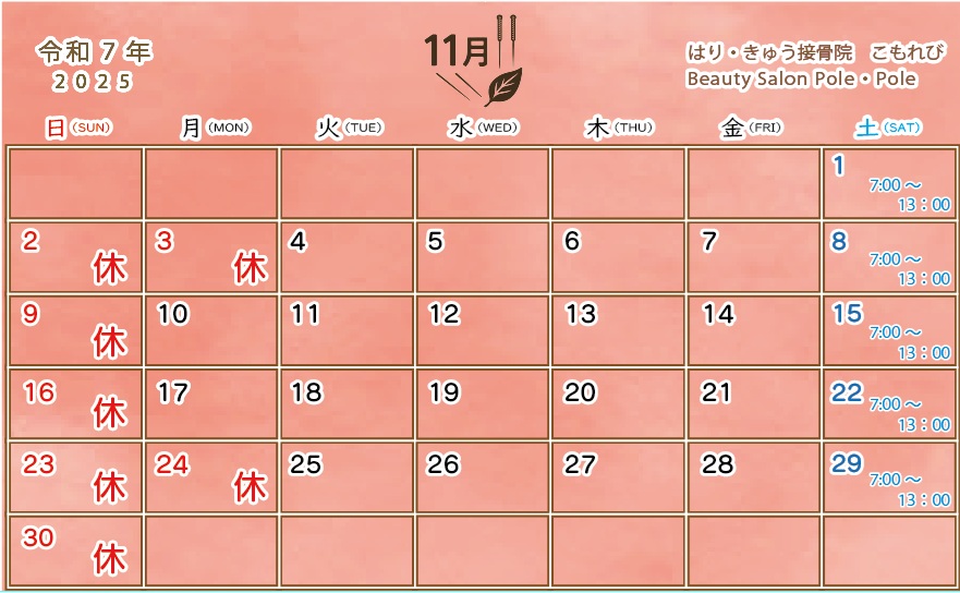 📅 11月の診療日カレンダーを掲載しました。